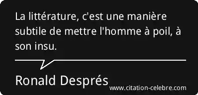 La littérature, c'est une manière subtile de mettre l'homme à poil, à son insu.