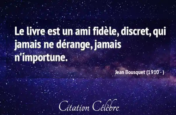 Le livre est un ami fidèle, discret, qui jamais ne dérange, jamais n'importune.