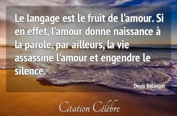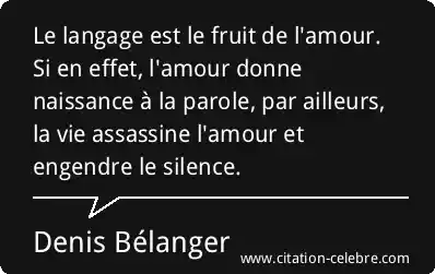Le langage est le fruit de l'amour. Si en effet, l'amour donne naissance à la parole, par ailleurs, la vie assassine l'amour et engendre le silence.