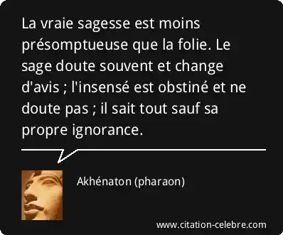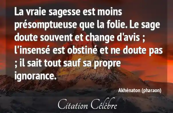 La vraie sagesse est moins présomptueuse que la folie. Le sage doute souvent et change d'avis ; l'insensé est obstiné et ne doute pas ; il sait tout sauf sa propre ignorance.