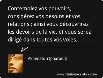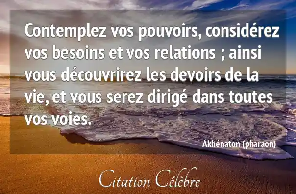 Contemplez vos pouvoirs, considérez vos besoins et vos relations ; ainsi vous découvrirez les devoirs de la vie, et vous serez dirigé dans toutes vos voies.