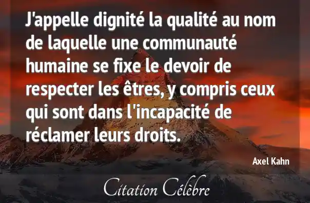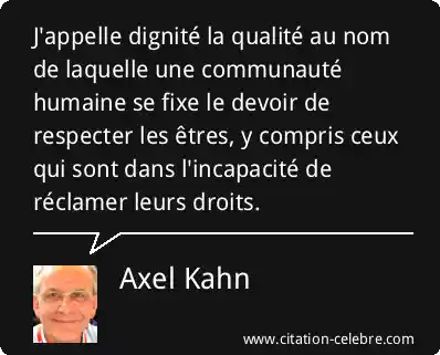 J'appelle dignité la qualité au nom de laquelle une communauté humaine se fixe le devoir de respecter les êtres, y compris ceux qui sont dans l'incapacité de réclamer leurs droits.