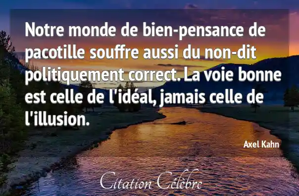 Notre monde de bien-pensance de pacotille souffre aussi du non-dit politiquement correct. La voie bonne est celle de l'idéal, jamais celle de l'illusion.