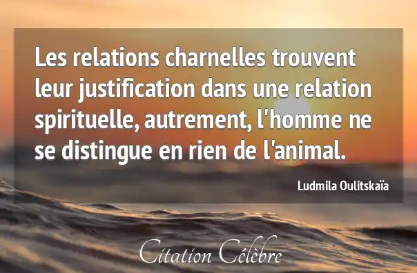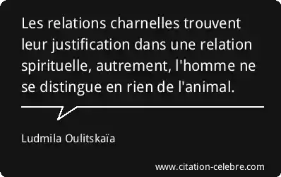 Les relations charnelles trouvent leur justification dans une relation spirituelle, autrement, l'homme ne se distingue en rien de l'animal.
