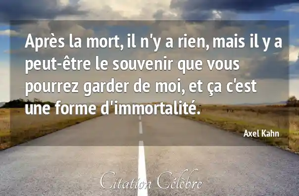 Après la mort, il n'y a rien, mais il y a peut-être le souvenir que vous pourrez garder de moi, et ça c'est une forme d'immortalité.