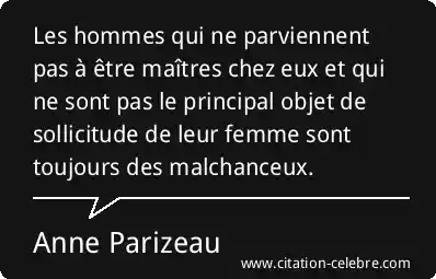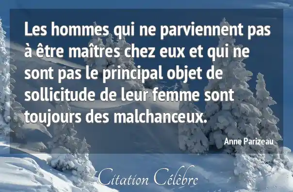 Les hommes qui ne parviennent pas à être maîtres chez eux et qui ne sont pas le principal objet de sollicitude de leur femme sont toujours des malchanceux.