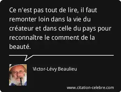 Ce n'est pas tout de lire, il faut remonter loin dans la vie du créateur et dans celle du pays pour reconnaître le comment de la beauté.