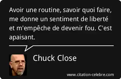 Avoir une routine, savoir quoi faire, me donne un sentiment de liberté et m'empêche de devenir fou. C'est apaisant.