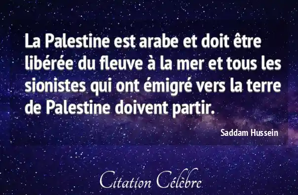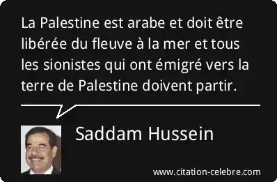 La Palestine est arabe et doit être libérée du fleuve à la mer et tous les sionistes qui ont émigré vers la terre de Palestine doivent partir.