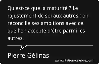 Qu'est-ce que la maturité ? Le rajustement de soi aux autres ; on réconcilie ses ambitions avec ce que l'on accepte d'être parmi les autres.