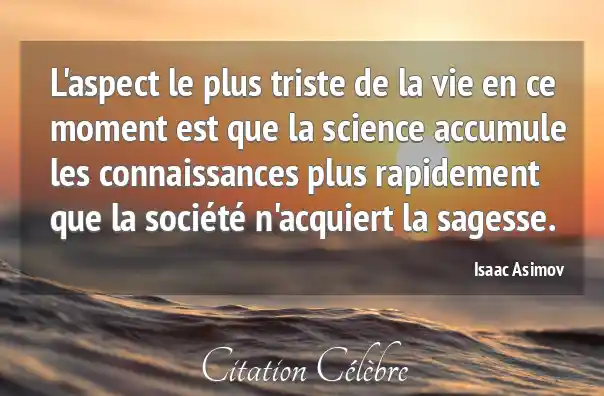L'aspect le plus triste de la vie en ce moment est que la science accumule les connaissances plus rapidement que la société n'acquiert la sagesse.