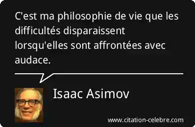 C'est ma philosophie de vie que les difficultés disparaissent lorsqu'elles sont affrontées avec audace.