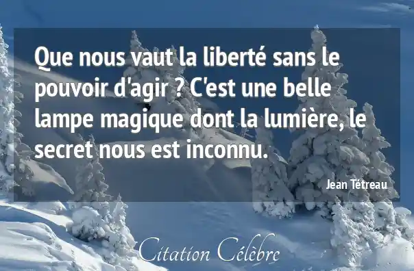 Que nous vaut la liberté sans le pouvoir d'agir ? C'est une belle lampe magique dont la lumière, le secret nous est inconnu.