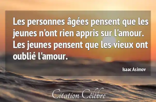 Les personnes âgées pensent que les jeunes n'ont rien appris sur l'amour. Les jeunes pensent que les vieux ont oublié l'amour.