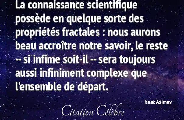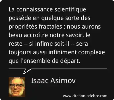 La connaissance scientifique possède en quelque sorte des propriétés fractales : nous aurons beau accroître notre savoir, le reste -- si infime soit-il -- sera toujours aussi infiniment complexe que l'ensemble de départ.