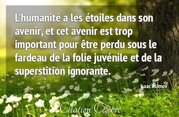 L'humanité a les étoiles dans son avenir, et cet avenir est trop important pour être perdu sous le fardeau de la folie juvénile et de la superstition ignorante.