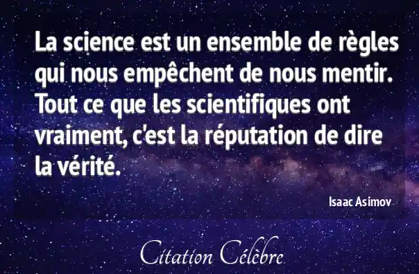 La science est un ensemble de règles qui nous empêchent de nous mentir. Tout ce que les scientifiques ont vraiment, c'est la réputation de dire la vérité.