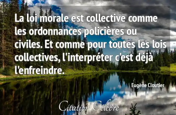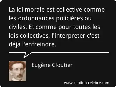 La loi morale est collective comme les ordonnances policières ou civiles. Et comme pour toutes les lois collectives, l'interpréter c'est déjà l'enfreindre.