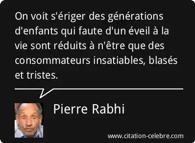 On voit s'ériger des générations d'enfants qui faute d'un éveil à la vie sont réduits à n'être que des consommateurs insatiables, blasés et tristes.