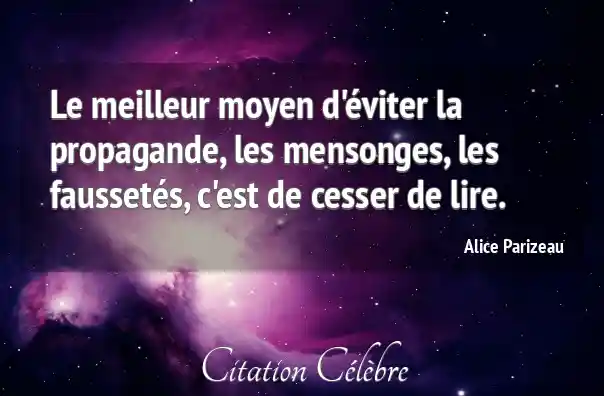 Le meilleur moyen d'éviter la propagande, les mensonges, les faussetés, c'est de cesser de lire.