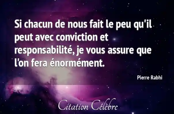 Si chacun de nous fait le peu qu'il peut avec conviction et responsabilité, je vous assure que l'on fera énormément.