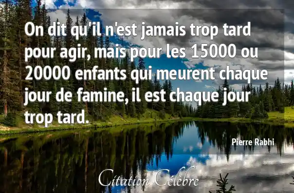 On dit qu'il n'est jamais trop tard pour agir, mais pour les 15000 ou 20000 enfants qui meurent chaque jour de famine, il est chaque jour trop tard.