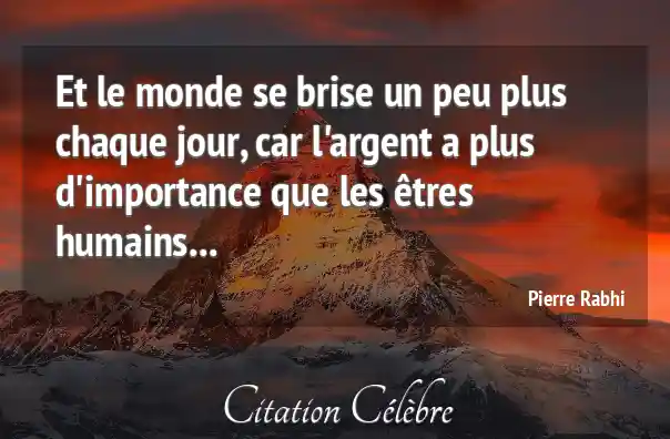 Et le monde se brise un peu plus chaque jour, car l'argent a plus d'importance que les êtres humains...