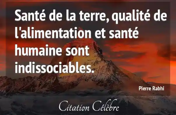 Santé de la terre, qualité de l'alimentation et santé humaine sont indissociables.