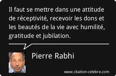 Il faut se mettre dans une attitude de réceptivité, recevoir les dons et les beautés de la vie avec humilité, gratitude et jubilation.