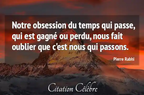 Notre obsession du temps qui passe, qui est gagné ou perdu, nous fait oublier que c'est nous qui passons.