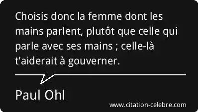 Choisis donc la femme dont les mains parlent, plutôt que celle qui parle avec ses mains ; celle-là t'aiderait à gouverner.