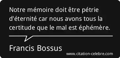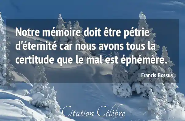 Notre mémoire doit être pétrie d'éternité car nous avons tous la certitude que le mal est éphémère.
