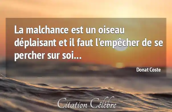 La malchance est un oiseau déplaisant et il faut l'empêcher de se percher sur soi...