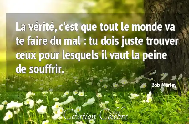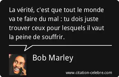 Cette puissante citation de Bob Marley exprime une vision lucide et, pour certains, pessimiste de la nature humaine et des relations. Elle signifie que, dans la vie, vous serez inévitablement blessé par les autres. La souffrance émotionnelle est une composante universelle de l'expérience humaine. Cependant, la phrase ne s'arrête pas là : elle suggère que votre tâche n'est pas d'éviter la douleur, mais de faire des choix sélectifs concernant les personnes que vous laissez entrer dans votre vie. Il s'agit de déterminer pour quelles relations – amoureuses, amicales ou familiales – l'attachement et le risque de douleur sont justifiés par la valeur et la profondeur du lien.