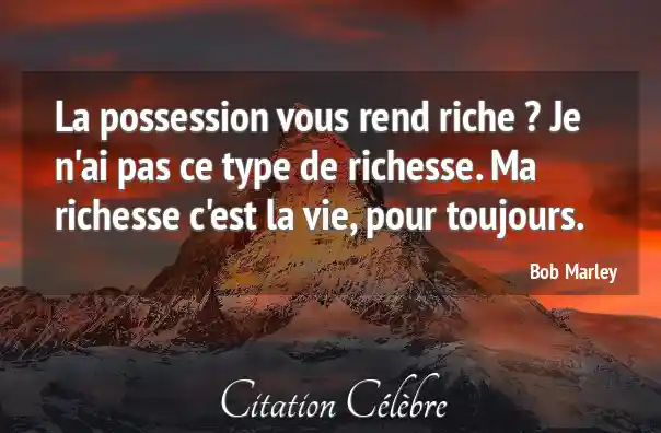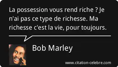 La possession vous rend riche ? Je n'ai pas ce type de richesse. Ma richesse c'est la vie, pour toujours.