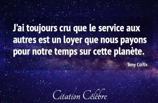 J'ai toujours cru que le service aux autres est un loyer que nous payons pour notre temps sur cette planète.