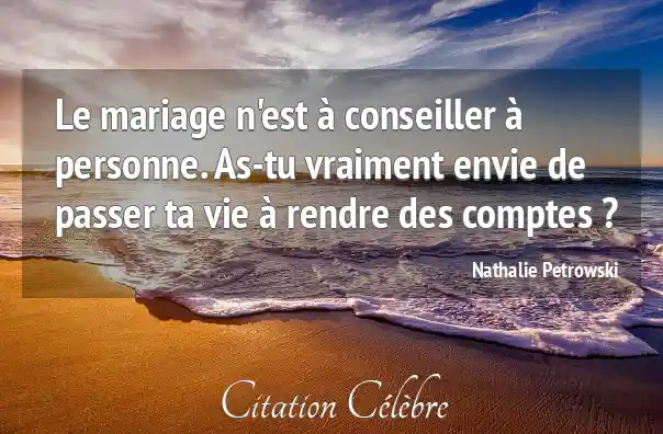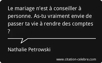 Le mariage n'est à conseiller à personne. As-tu vraiment envie de passer ta vie à rendre des comptes ?