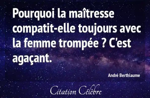 Pourquoi la maîtresse compatit-elle toujours avec la femme trompée ? C'est agaçant.