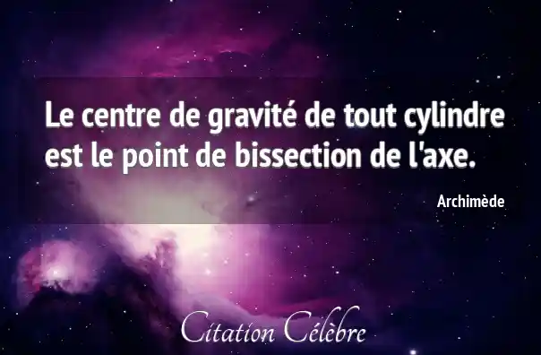 Le centre de gravité de tout cylindre est le point de bissection de l'axe.