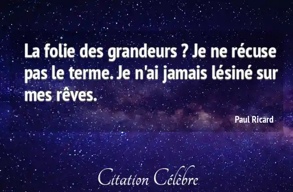 La folie des grandeurs ? Je ne récuse pas le terme. Je n'ai jamais lésiné sur mes rêves.