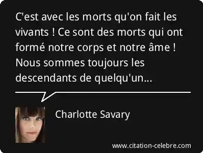C'est avec les morts qu'on fait les vivants ! Ce sont des morts qui ont formé notre corps et notre âme ! Nous sommes toujours les descendants de quelqu'un...