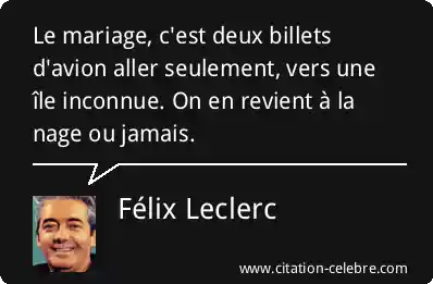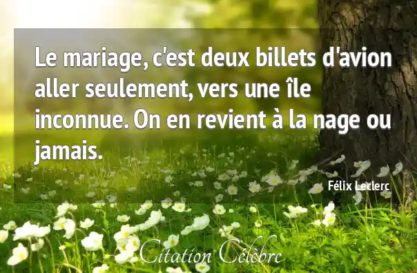Le mariage, c'est deux billets d'avion aller seulement, vers une île inconnue. On en revient à la nage ou jamais.