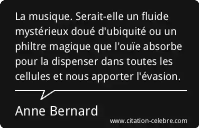 La musique. Serait-elle un fluide mystérieux doué d'ubiquité ou un philtre magique que l'ouïe absorbe pour la dispenser dans toutes les cellules et nous apporter l'évasion.
