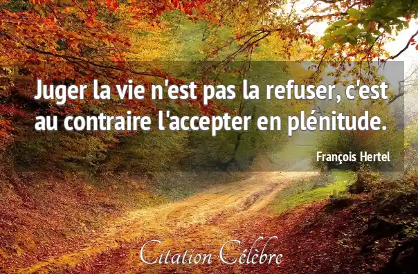 Juger la vie n'est pas la refuser, c'est au contraire l'accepter en plénitude.