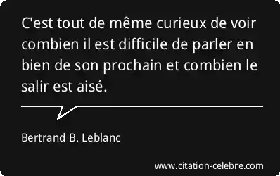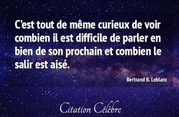 C'est tout de même curieux de voir combien il est difficile de parler en bien de son prochain et combien le salir est aisé.