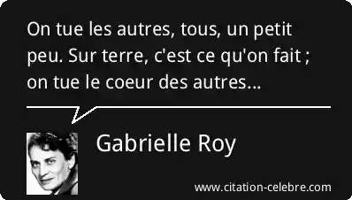 Citation Gabrielle Roy coeur : On tue les autres, tous, un petit peu. Sur terre,...
