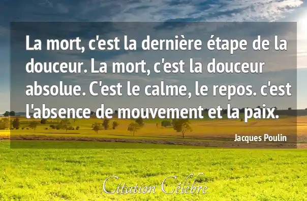 La mort, c'est la dernière étape de la douceur. La mort, c'est la douceur absolue. C'est le calme, le repos. c'est l'absence de mouvement et la paix.