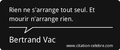 Citation Bertrand Vac rien : Rien ne s'arrange tout seul. Et mourir n'arrange rien....