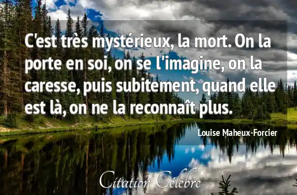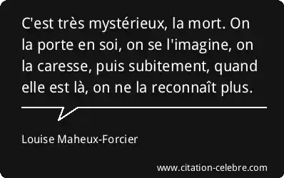 C'est très mystérieux, la mort. On la porte en soi, on se l'imagine, on la caresse, puis subitement, quand elle est là, on ne la reconnaît plus.