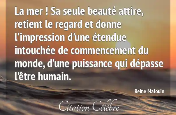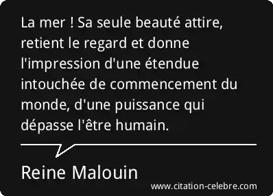 La mer ! Sa seule beauté attire, retient le regard et donne l'impression d'une étendue intouchée de commencement du monde, d'une puissance qui dépasse l'être humain.